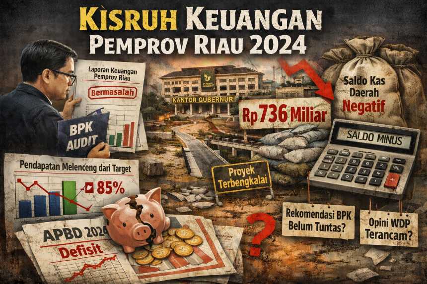DetikXPost – Pekanbaru – Pengelolaan keuangan Pemerintah Provinsi Riau pada Tahun Anggaran 2024 dinilai belum menunjukkan perbaikan signifikan. Temuan audit, realisasi anggaran yang tidak mencapai target, serta belum jelasnya tindak lanjut rekomendasi Badan Pemeriksa Keuangan (BPK) memunculkan kekhawatiran bahwa persoalan yang sama akan kembali terulang pada APBD 2025.