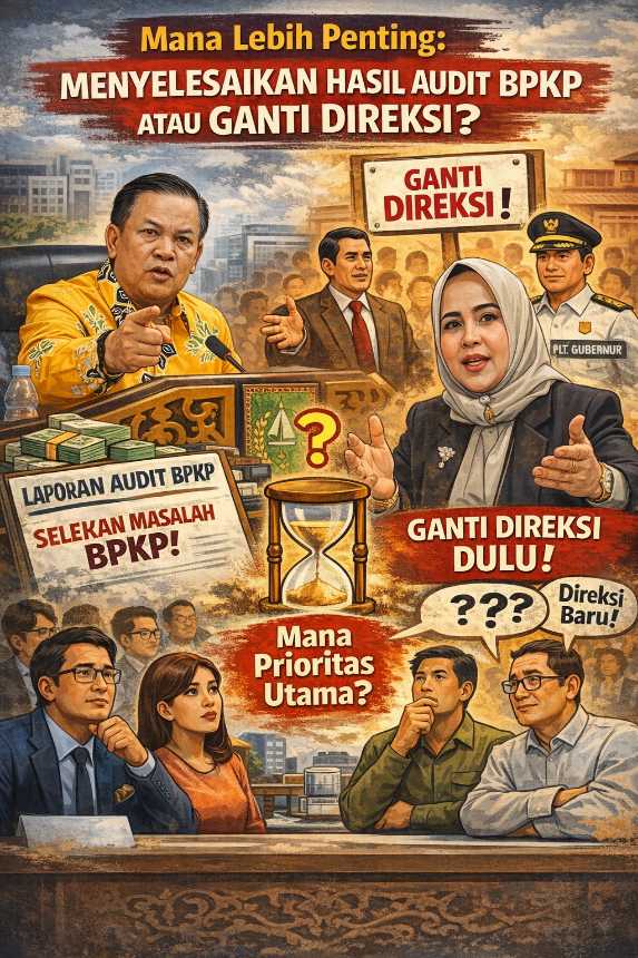 Namun, alih-alih fokus pada penuntasan rekomendasi audit, perhatian publik justru tertuju pada langkah Komisaris dan Plt Gubernur yang dinilai lebih menonjolkan agenda pergantian direksi, termasuk terhadap direksi yang baru saja dilantik.