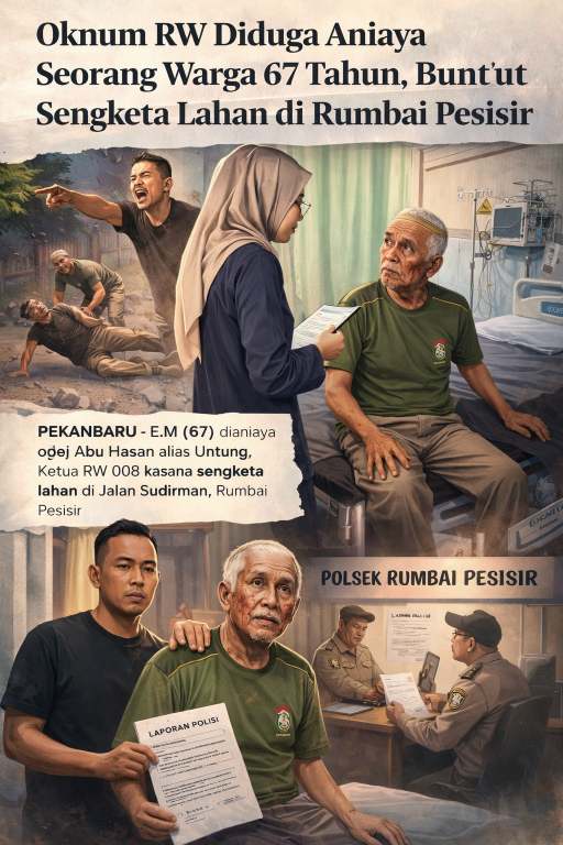 DetikXPost- PEKANBARU — Konflik sengketa lahan di wilayah Kecamatan Rumbai Pesisir, Kota Pekanbaru, berujung dugaan tindak pidana penganiayaan. Seorang warga lanjut usia berinisial E.M (67), warga Kelurahan Meranti Pandak, dilaporkan menjadi korban pemukulan yang diduga dilakukan oleh oknum Ketua RW 008, Abu Hasan alias Untung.