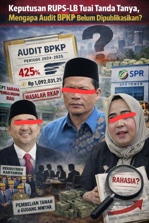 DetikXPost – PEKANBARU — Pelaksanaan Rapat Umum Pemegang Saham Luar Biasa (RUPS-LB) sebuah badan usaha menuai sorotan publik. Rapat tersebut digelar di tengah belum dipublikasikannya hasil audit Badan Pengawasan Keuangan dan Pembangunan (BPKP), yang disebut memuat sejumlah catatan penting terkait pengelolaan perusahaan.