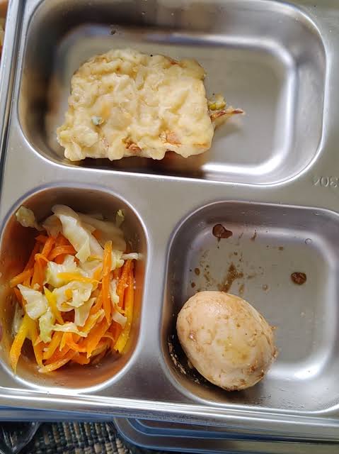 Orang tua murid dan guru melaporkan bahwa porsi makanan yang seharusnya bergizi lengkap ternyata hanya berisi seporsi nasi, sayur, dan potongan ayam berukuran sangat kecil.
