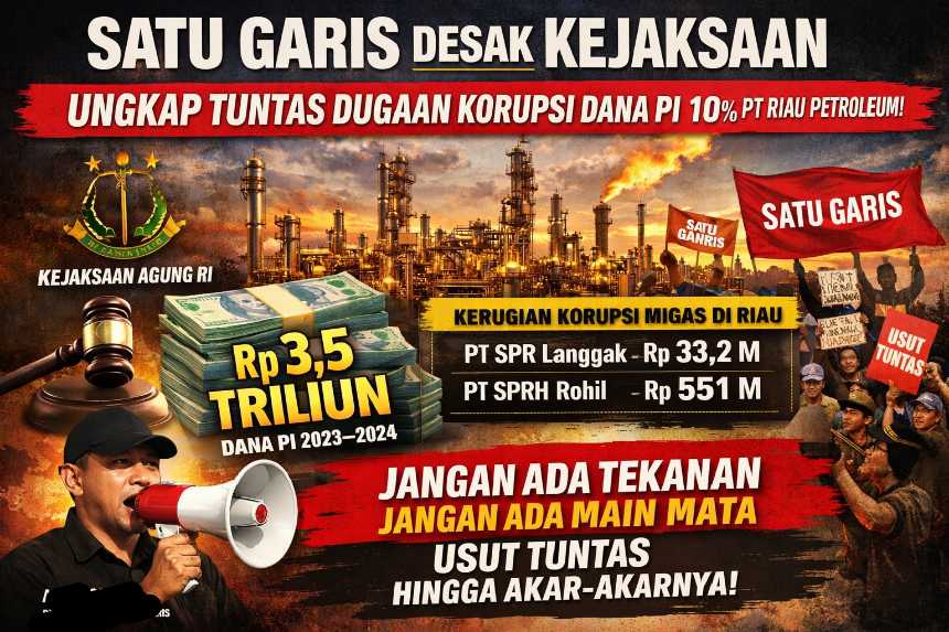 SATU GARIS menilai, pengusutan dugaan penyimpangan dana PI yang nilainya mencapai triliunan rupiah sangat penting guna menjaga akuntabilitas dan transparansi pengelolaan dana publik, terutama di sektor strategis migas di Riau. Dana PI 10% merupakan hak daerah yang seharusnya memberi manfaat sebesar-besarnya bagi masyarakat.